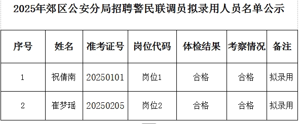 2025年铜陵市公安局郊区分局第二批 “警民联调”室招聘联调员拟录用人员公示